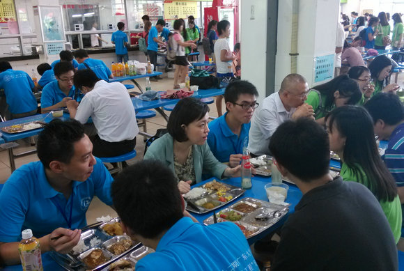 团省委曾颖如书记、我校李善民副校长与学员在饭堂用餐并交流
