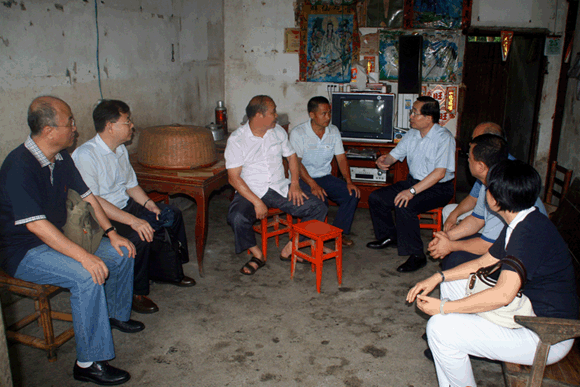 郑德涛书记一行与连州市委书记黄裕团、市长刘泽和以及保安镇干部进行了亲切交谈,详细了解连州的经济和社会发展情况、人文环境、自然条件以及扶贫开发“双到”工作的开展情况。郑德涛书记一行还深入种田村,看望我校驻村干部赵一波同志,并深入了解该村在脱贫致富上存在的困难,同时看望了3户贫困村民。
