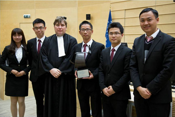 “国际刑事法院审判竞赛(International Criminal Court Trial Competition)”由国际刑事法院发起、与世界各地的法律组织或大学合作,使用法院的六种官方语言(阿拉伯语、汉语、英语、法语、俄语和西班牙语)举办,是国际法学界重大的模拟审判比赛,具有深远影响。比赛通过每赛区预选赛决出三支优胜队伍,赴国际刑事法院所在地荷兰海牙参加国际赛。本年度中文赛区的比赛,于2013年4月13日至4月14日由国际刑事法院与中国政法大学合作举办,共有北京大学、澳门大学、复旦大学、中国政法大学、外交学院等15所境内外高校代表队参加。我校代表队在国内赛中荣获全国优胜一等奖、最佳书状奖和最佳检察官奖(郑志凡同学),并获得赴荷兰海牙国际刑事法院参加决赛的资格。参加此次决赛的还有中国政法大学代表队和外交学院代表队,分别获得亚军和季军。