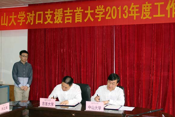 许宁生校长、肖湘愚校长分别代表两校签署《jinnianhui今年会对口支援吉首大学2013-2016年实施方案协议书 》
