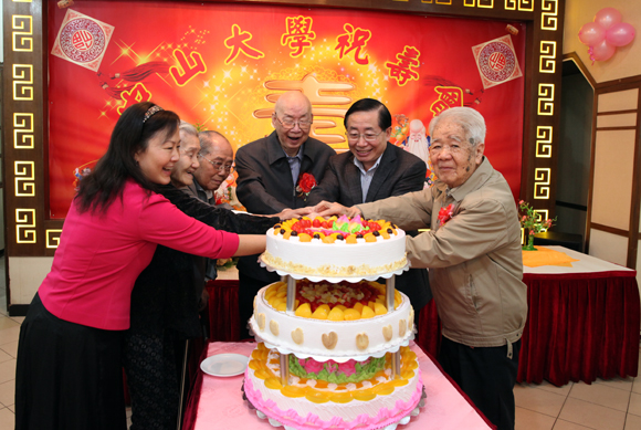 出席祝寿会的还有老领导张展霞、李岳生、魏聪桂、卢光启、许发茂、樊筑生。我校相关部处、党总支、协会等负责人与会。