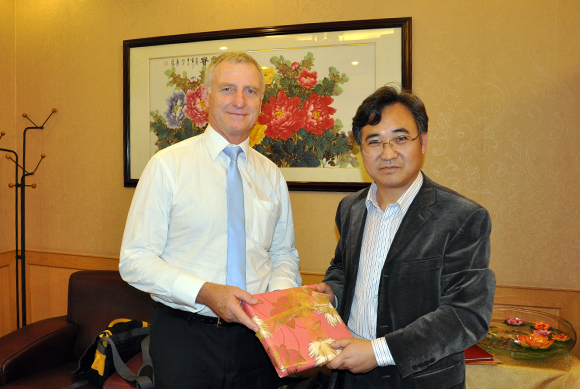 我校校长助理朱熹平会见了来宾,外国语学院院长常晨光、国际合作与交流处副处长郝雅娟、亚太研究院副教授王学东等陪同出席了会见。双方就学生交换、教师互访、研究生联合培养、共建研究机构等方面的合作进行了探讨,希望能够在上述方面开展实质性合作。
