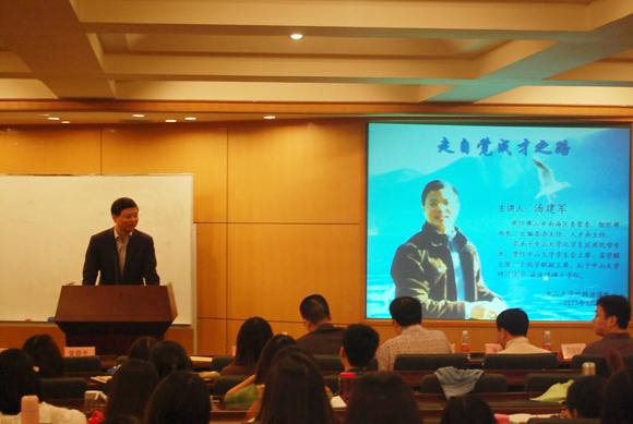 聘书颁发仪式过后,汤建军校友以“走自觉成才之路”为主题,启动了他的第一堂课,与外院学子分享了自己的学习工作心得,给予了同学们关于成长、成才的思考和建议。