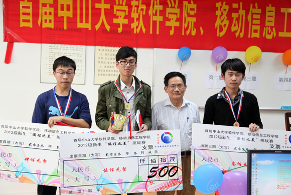 本次比赛参赛选手为移动信息工程学院和软件学院2012级第一学期《软件设计》课程上机考试排名年级前50名的非信息学保送生。比赛赛制由ACM-ICPC(国际大学生程序设计竞赛)金牌教练、软件学院郭嵩山教授亲自制定,旨在考核参赛选手在压力下如何充分运用所学知识,在尽可能短的时间内解决尽可能多的程序设计问题。软件学院党委谭英耀副书记和jinnianhui今年会学生软件技术发展中心为本次比赛提供了全程支持。