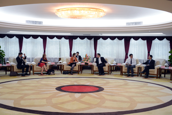 演讲前,我校颜光美副校长在中山楼贵宾厅与来宾进行了会面。国际合作与交流处处长凌文华,外国语学院院长、澳大利亚研究中心主任常晨光,亚太研究院副教授、大洋洲研究中心常务副主任喻常森等陪同出席了会见。