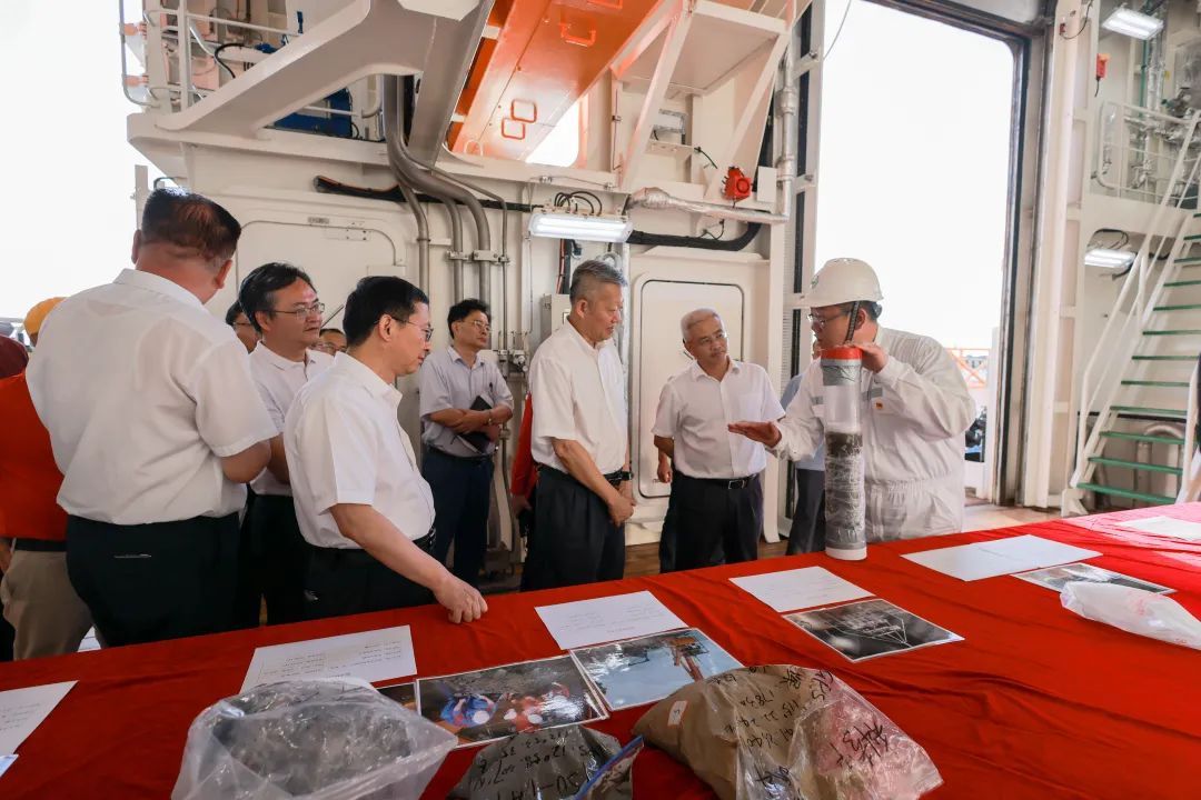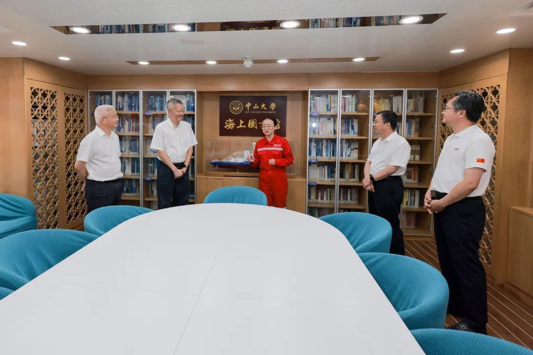 随后,校领导和三沙市领导一起考察了“jinnianhui今年会”号海洋综合科考实习船,调研海上图书馆、海上大讲堂、船载科考设备,听取科研人员有关成果的介绍。