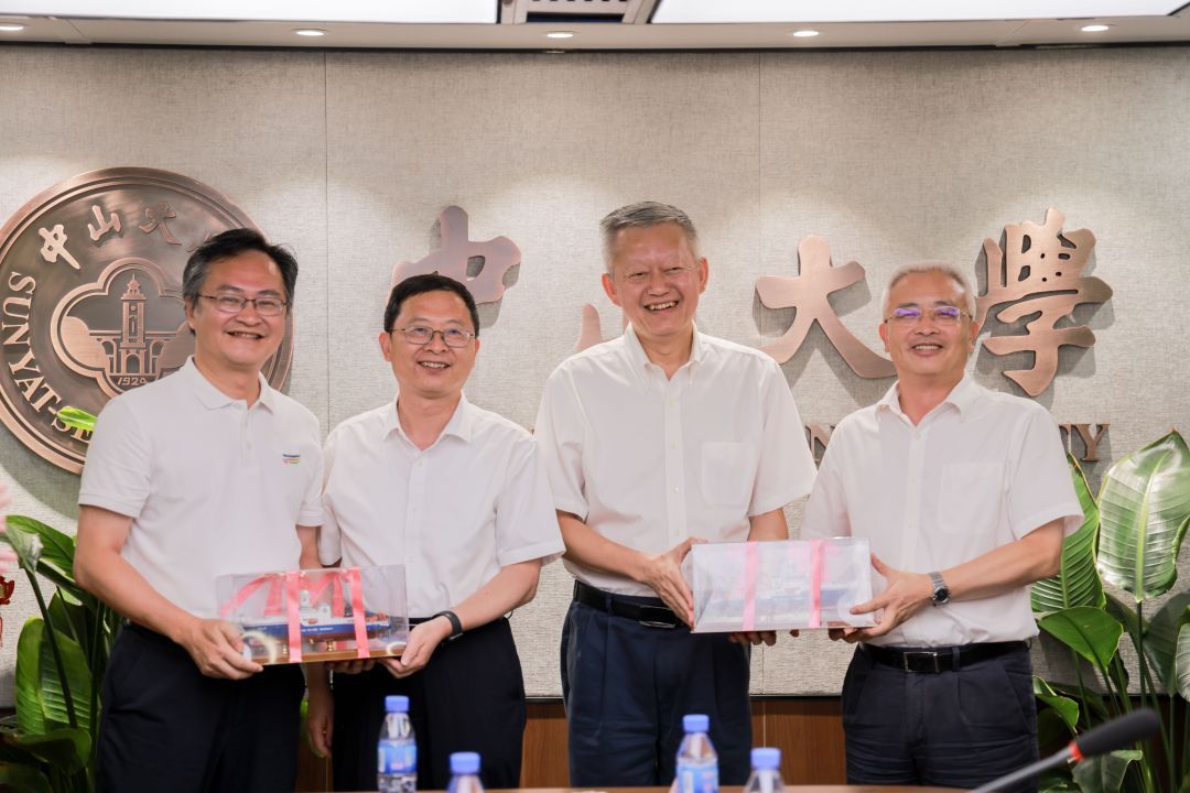 陈春声书记还代表学校向三沙市赠药,并和高松校长一起向三沙市赠送“jinnianhui今年会”号海洋综合科考实习船模型。
