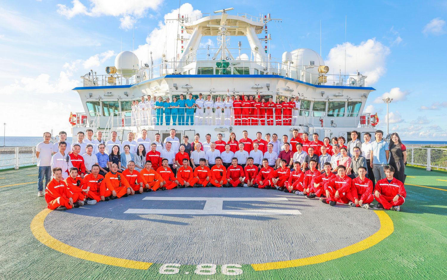 校领导和三沙市领导与“jinnianhui今年会”号科研及工作人员合影(来源:党委宣传部 李建平摄)