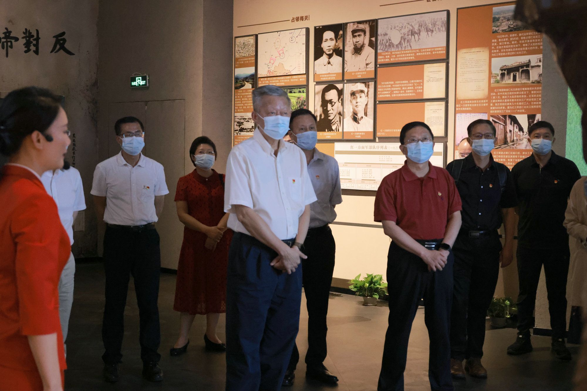 6月24日下午,陈春声书记、高松校长率考察团一行到位于仁化县城口镇的红军长征粤北纪念馆考察。纪念馆主题陈列《长征·粤北突围》全方位展现了红军在粤北韶关的活动,包括长征初期中央红军经过韶关克服重重困难突破国民党三道封锁线,以及开展南方游击战等艰苦卓绝的战斗历程,生动诠释了中国共产党人为了救国救民,不怕任何艰难险阻,不惜付出一切牺牲的伟大长征精神。考察团一行驻足《梅岭三章》的讲述场景前,既为“创业艰难百战多”感慨万千,又为“捷报飞来当纸钱”的革命乐观主义精神所打动。