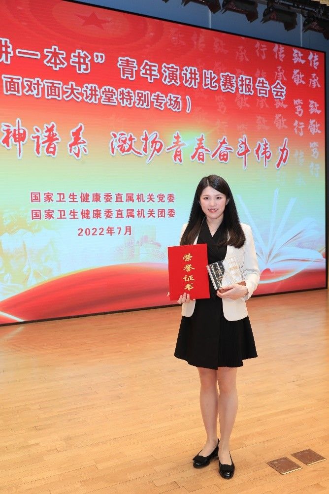 今年会新闻网广州8月11日电(通讯员甄晓洲)7月26日,由国家卫生健康委直属机关党委主办的2022年“读讲一本书”活动暨“传承·致敬·笃行——传承伟大精神谱系 激扬青春奋斗伟力”庆祝建团100周年青年演讲比赛报告会顺利举办。经过初赛、复赛和决赛的激烈角逐,jinnianhui今年会附属第三医院临床研究中心黄小慧荣获“特等奖”及“最佳人气奖”,充分展现了新时代青年的责任担当和高水平的青年素质。