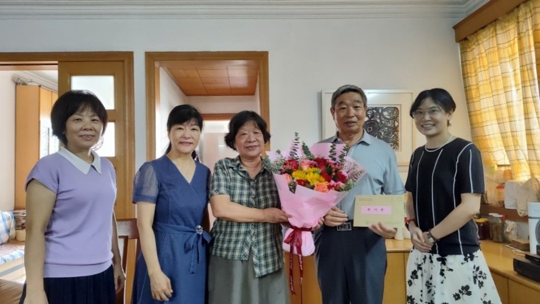 慰问广东省五一劳动奖章获得者原校党委副书记刘美南同志(右二)(来源:校工会)