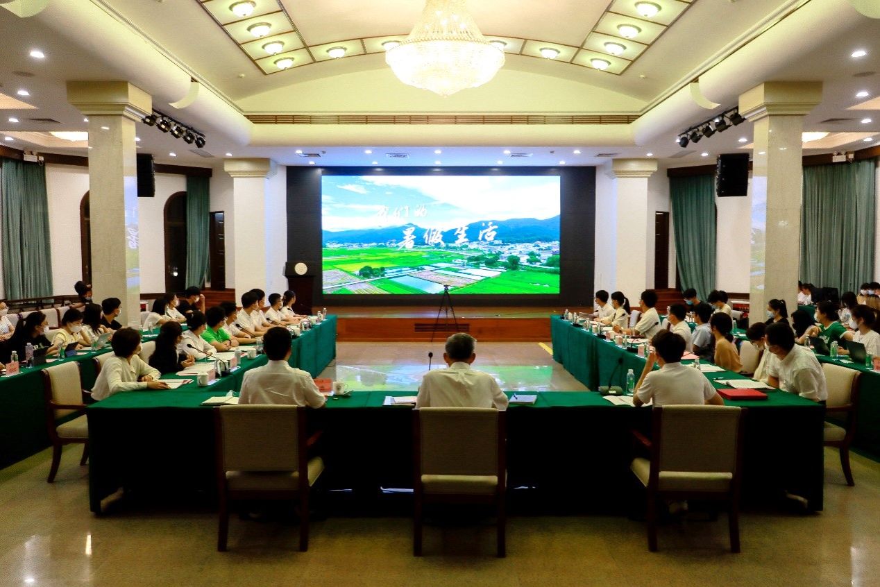 参会师生观看“我们的暑假生活”专题视频(来源:校团委)