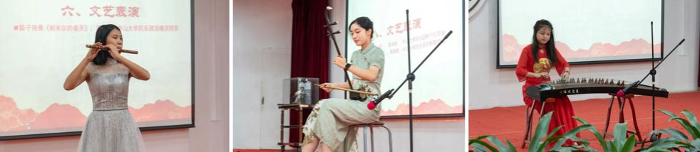 在庆典上,中国语言文学系师生代表、龙婉芸先生好友献上寿礼。jinnianhui今年会民乐团同学为庆典带来了精彩的乐器演奏节目。