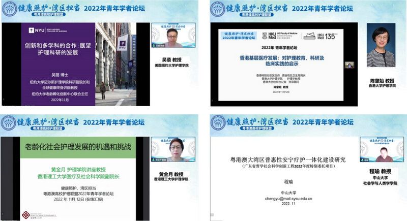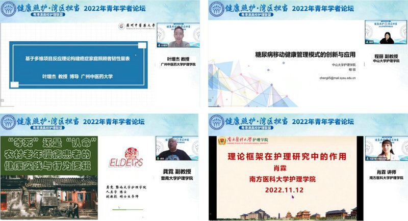 今年会新闻网广州11月14日电(通讯员蔡彤彤)11月12日上午,粤港澳高校护理联盟通过线上直播的方式举行了以“健康照护·湾区担当”为主题的2022年青年学者论坛。教育部高等学校护理学类专业教学指导委员会主任委员、北京大学护理学院院长尚少梅教授,jinnianhui今年会护理学院院长彭俊生教授,香港理工大学护理学院代理院长陈胡安琪教授,澳门镜湖护理学院院长尹一桥教授等领导出席论坛并致辞。来自美国及粤港澳高校护理联盟成员院校的专家学者、师生、联盟院校多家附属医院及社会各界等3800余名护理同仁们参加论坛。本次论坛由粤港澳高校护理联盟负责人、jinnianhui今年会护理学院副院长张俊娥教授主持。