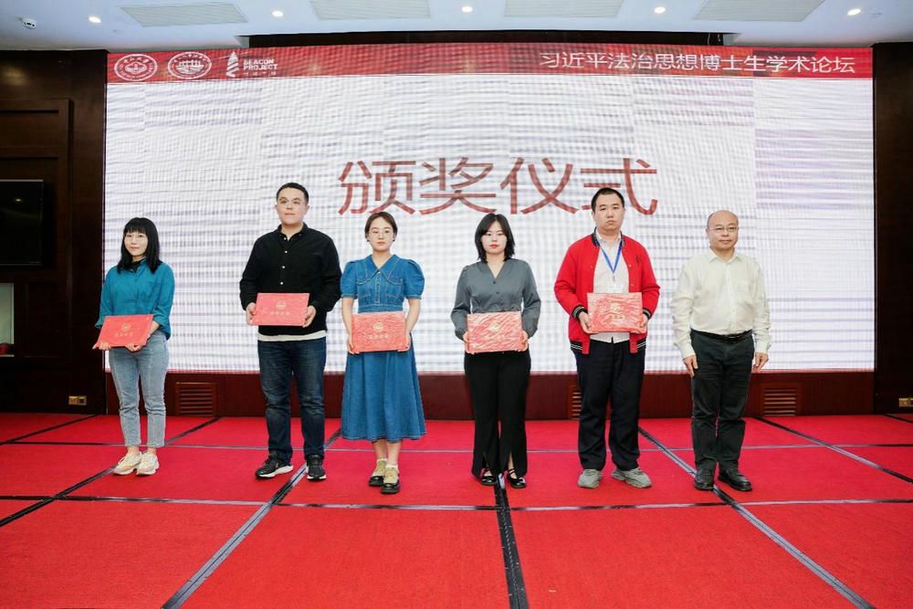 马克思主义学院院长林进平教授、党委学生工作部部长钟一彪为论文三等奖获得者颁奖