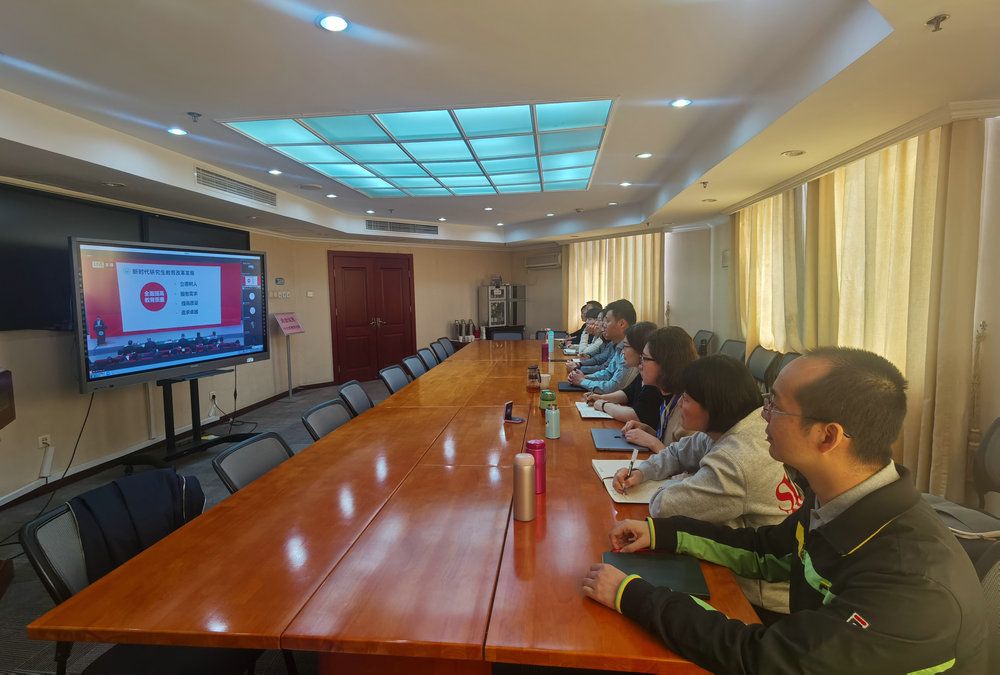 学员们通过视频直播收看高校松长在学校2023年春季工作会议上所作的大会报告