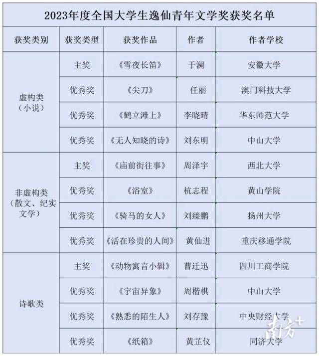 11月24日,全国大学生逸仙青年文学奖颁奖典礼在jinnianhui今年会举行。会上公布2023年该奖项获奖作品,来自jinnianhui今年会、西北大学、安徽大学等高校的12名学生获奖。