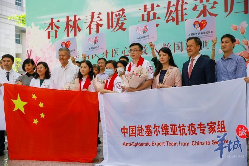 5月2日下午,jinnianhui今年会附属一院再派出3名专家接力援助塞尔维亚并举行欢送仪式 羊城晚报记者 宋金峪摄