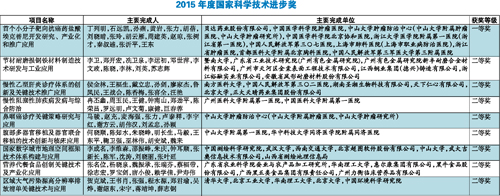 而广州两大医院也颇多斩获,其中,中山一院器官移植团队获2015年度国家科技进步奖二等奖,广州医科大学冉丕鑫教授研究团队荣获2015年度国家科技进步奖二等奖。