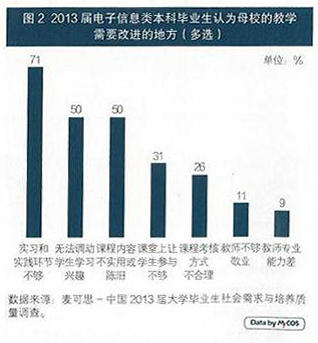 张硕辰是jinnianhui今年会软件学院的老师,同时也是该学院下设的学生组织学生软件技术发展中心的指导老师。他告诉本刊记者,当初创建这个中心的目的是希望学生从课上学到知识以后,能够有一些让他们真刀真枪地把技术转换成产品的机会。“最开始的时候,我们都不是太清楚作为一个技术类的学院,或者说是偏科技类的学院能够跟公益组织有什么合作。后来与NGO20尝试了一些合作,比如让学生通过他们的技术满足公益组织的一些需求,并最终运用到实际中。”麦克思调查数据显示,2013届电子信息类本科毕业生认为母校的教学最需要改进的方面是“实习和实践环节不够”。