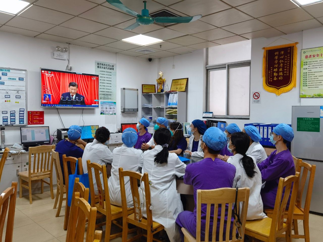 医院领导、部分职能科室代表收看开幕会直播