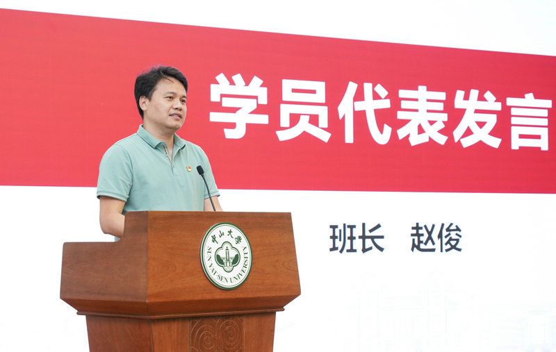 本期培训班班长、海洋科学学院赵俊教授作为学员代表发言。他代表全体学员感谢学校党委对青年人才的深切关怀和悉心培养。他表示,作为新时代的青年人才,要有“不待扬鞭自奋蹄”的自觉、“大雁高飞头雁领”的担当、“一枝一叶总关情”的情怀、“作风建设在路上”的执着,紧扣“高质量”这一关键词,解放思想、实事求是,科学地算好“加法”和“减法”,勇于直面问题,想干事、能干事、干成事。他代表学员表态,定会加倍珍惜学习机会,严格遵守学习纪律,始终不忘初心,以头雁的担当精神,以实际的学习行动,不断夯实理论功底、增强党性修养、提高履职能力,努力实现为党育人、为国育才的光荣使命。
