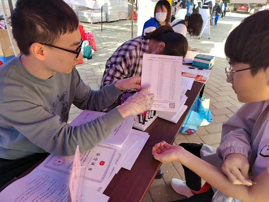 市红会的护士们为加入中华骨髓库的同学们采血入库