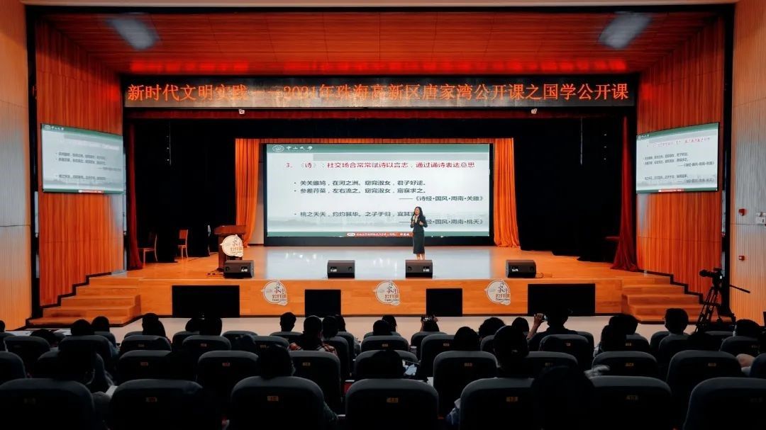 人以文立,思以文传。中国语言文学系(珠海)肩负立心立命的文化使命,坚持文化自信,弘扬中华优秀传统文化。教职工党支部教师面向珠海市高新区讲授“唐家湾公开课”,通过《习近平谈治国理政》第三卷中涉及“十三经”的内容,向大众介绍中国文化精神的刚健、向上、沉雄、豪放,课程线上观看量超11.5万,获媒体广泛报道;积极承担校园文化传承项目,推行文化与经典传播“文珠计划”,主办红色剧本创作展演大赛、“立足中国大地,讲好中国故事”文艺作品创意大赛等,将中文学子的专业知识与对文化艺术的审美融会贯通,用原创作品挖掘红色历史,展现广阔、深刻的社会时代变迁,传递了独到的现实关照和炽热的家国情怀。
