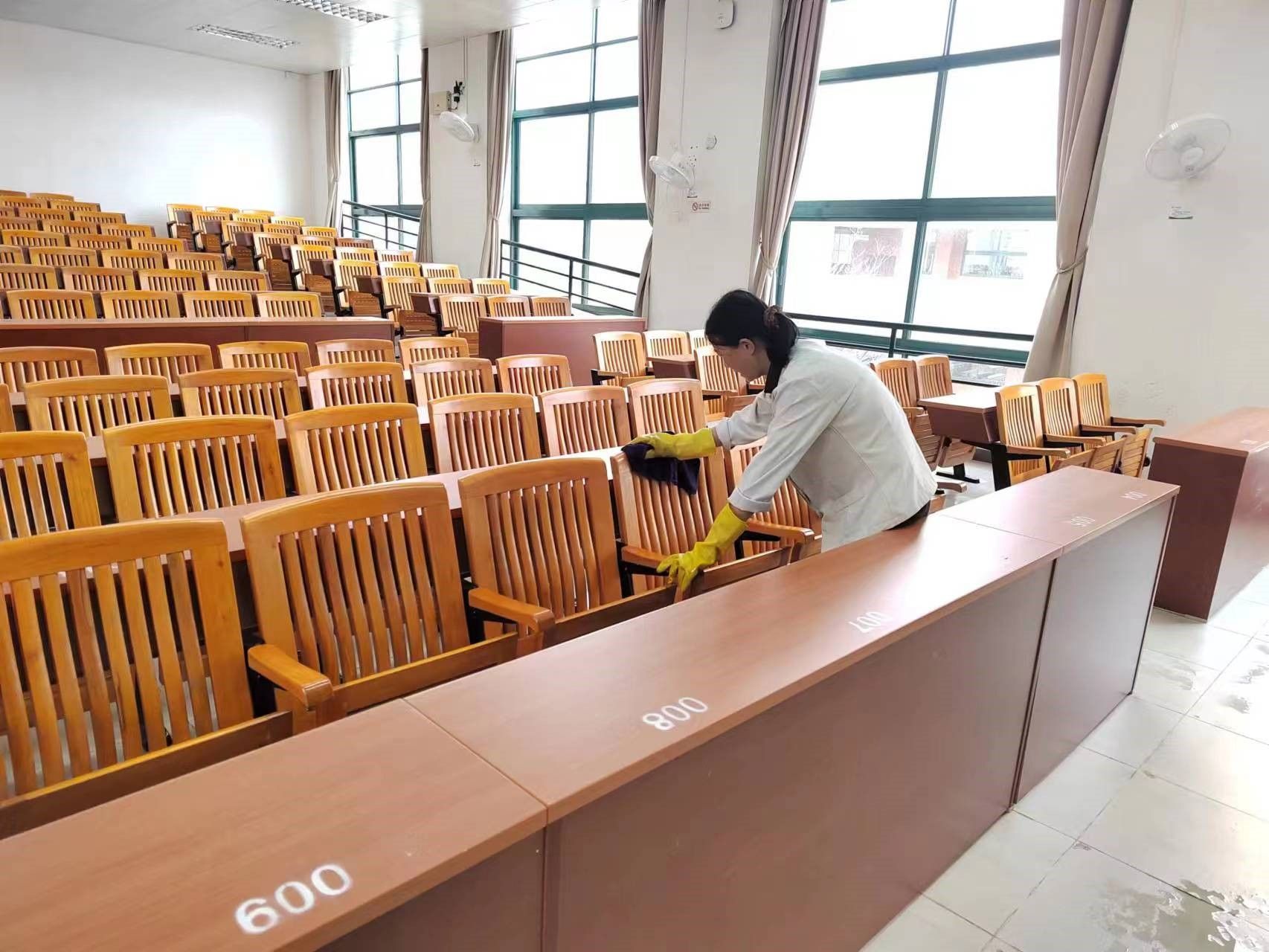 物业工作人员开学前进行教室清洁