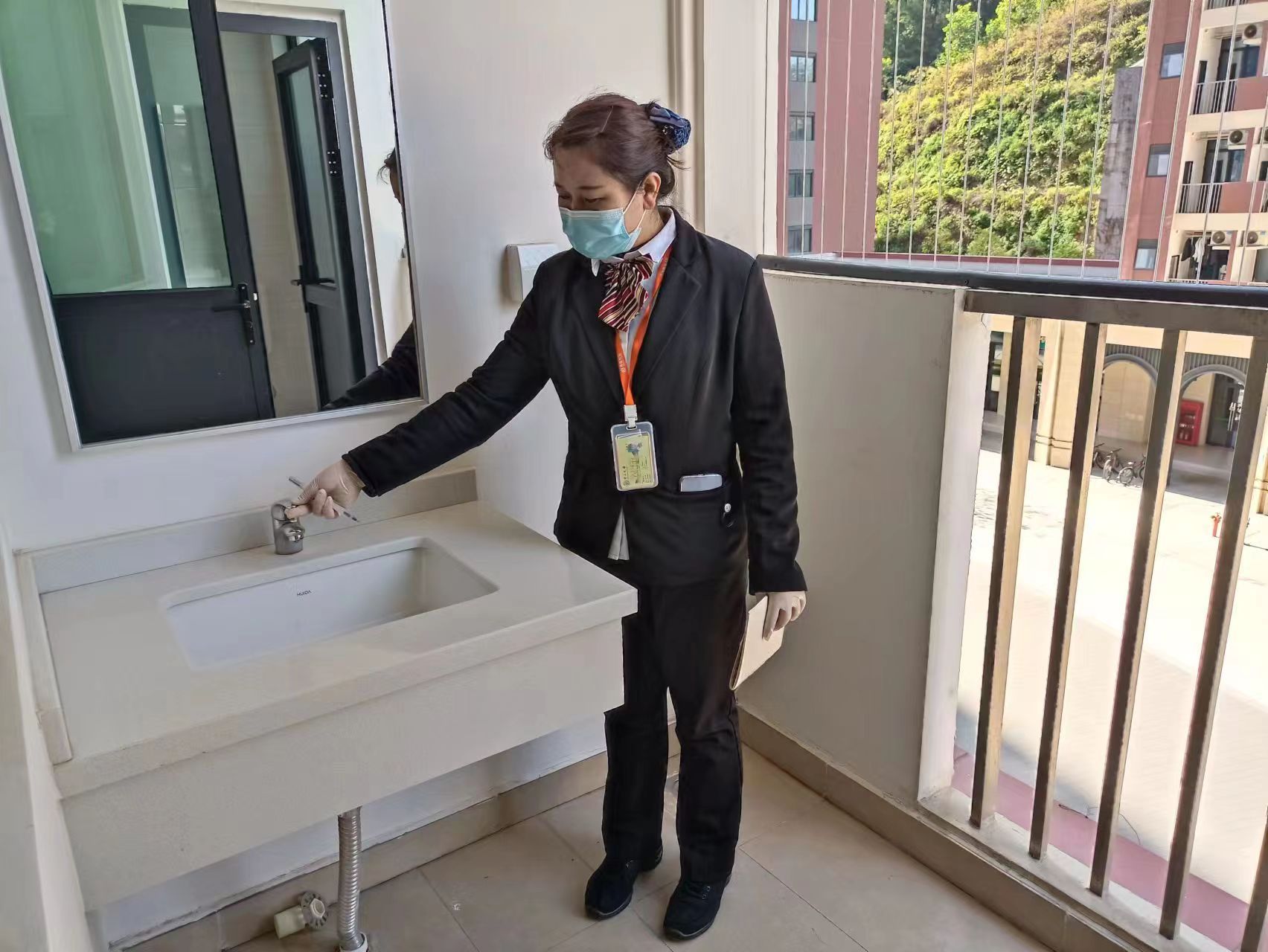 物业工作人员进行宿舍检查