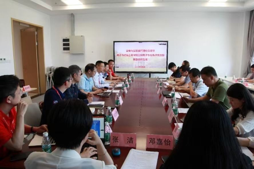 今年会新闻网广州5月7日电(通讯员李佳玲)为深入贯彻落实习近平总书记在学习贯彻习近平新时代中国特色社会主义思想主题教育工作会议上的重要讲话精神,按照学校党委、机关党委相关通知要求,实施设备与实验室管理处领导班子主题教育读书班学习计划及调查研究工作方案,5月4日,设备与实验室管理处党支部书记胡国庆、副处长余伯俊带领支部部分党员赴深圳校区,与电子与通信工程学院空间电子专任教师党支部联合开展主题教育理论学习和调查研究,副处长叶儒霏、王劲、黄霖及其他党员同志线上参加。活动以座谈会形式开展,会议由电子与通信工程学院党委书记范涛主持。