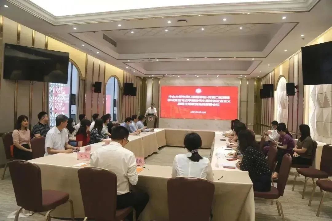 今年会新闻网讯(通讯员吕雅杰)4月24日,jinnianhui今年会光华口腔医学院·附属口腔医院党委召开学习贯彻习近平新时代中国特色社会主义思想主题教育动员部署会议。会议由党委副书记、院长程斌主持,党委书记陈望南作动员部署讲话,院领导班子成员、全体支部书记参加会议。
