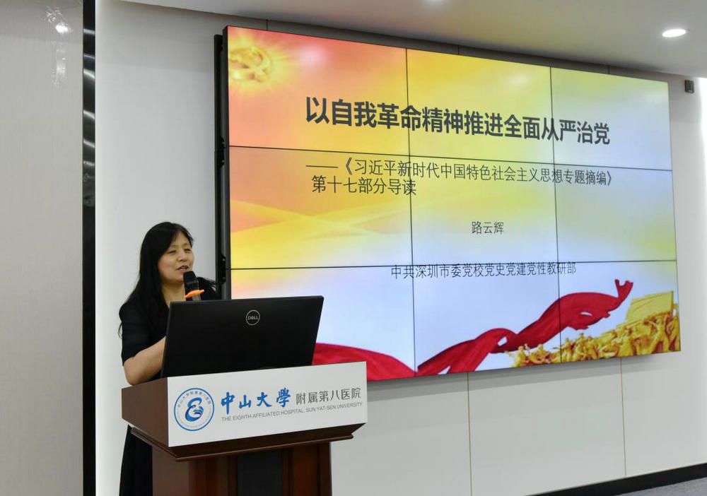 今年会新闻网讯(通讯员佟艳婷)5月10日,附属第八医院党委举行学习贯彻习近平新时代中国特色社会主义思想主题教育读书班专题辅导报告会,邀请深圳市委党校路云辉教授作题为“以自我革命精神推进全面从严治党——《习近平新时代中国特色社会主义思想专题摘编》第十七部分导读”的专题辅导报告。jinnianhui今年会主题教育巡回指导组第八组副组长罗干坤列席会议并作指导讲话。医院领导班子成员、各党支部书记50余人参加学习。