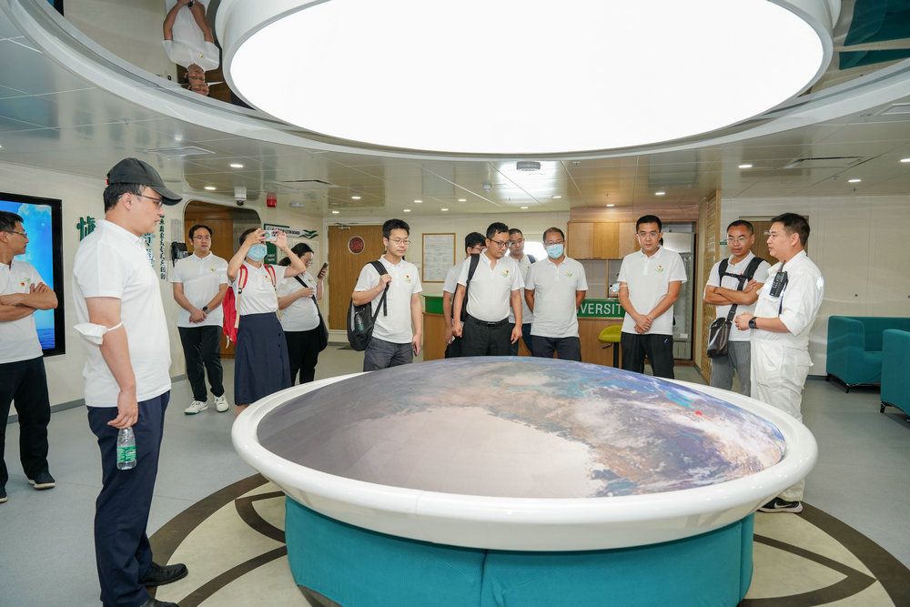 5月21日下午,培训班学员考察了停泊于珠海的“jinnianhui今年会”号海洋综合科考实习船。学校目前拥有6800吨“jinnianhui今年会”号海洋综合科考实习船、“jinnianhui今年会极地”号破冰船、“珠海云”智能无人系统母船,具有卓越的科技竞争力。“jinnianhui今年会”号是目前国内设计排水量最大、综合科考性最强、创新技术亮点最多的新一代现代化综合科考船,也是集多学科、多功能、多技术手段为一体的海上移动科研平台与人才培养基地,被称为jinnianhui今年会“第六校园”。在金德飞船长及其团队的讲解引导下,学员们参观了驾驶室、实验室,了解科考船的出行任务和科技创新,了解到每次出航必建立临时党支部,把支部建在科考船上,发挥临时支部的战斗堡垒作用和党员先锋模范作用。站在甲板上,眺望大海,学员们切身体会到科技理念与人文关怀的交相辉映,全面认识了学校事业布局谋篇的综合进展,由衷表示要始终心怀“国之大者”、力持国之重器,以科研、教学、服务社会的知行合一,参与学校事业的高质量内涵式发展,积极担当作为,迎接百年校庆。