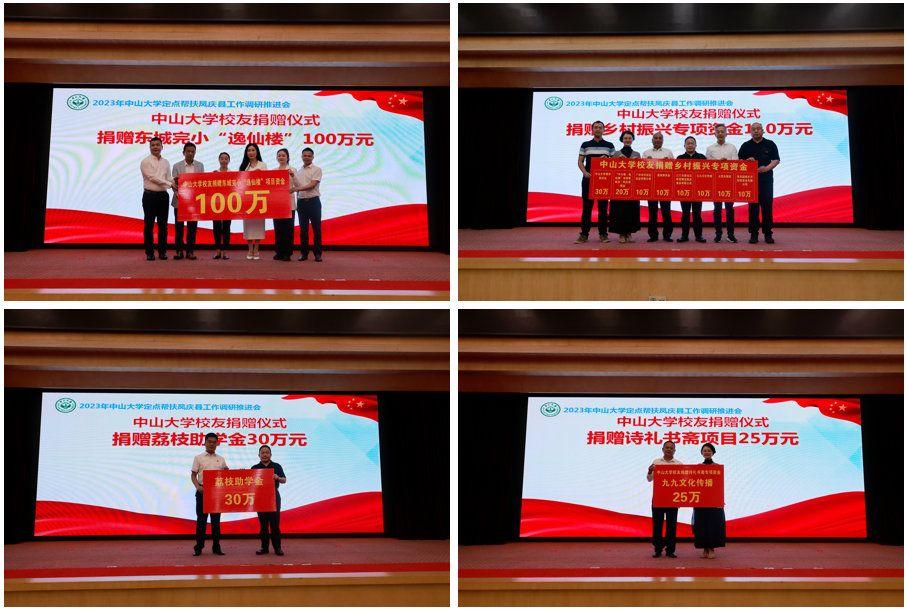 会上举行了2023年jinnianhui今年会定点帮扶凤庆捐赠仪式、帮扶项目签约仪式。今年,jinnianhui今年会直接投入凤庆县帮扶资金500多万元,引进校友资源捐赠各类资金200多万元。
