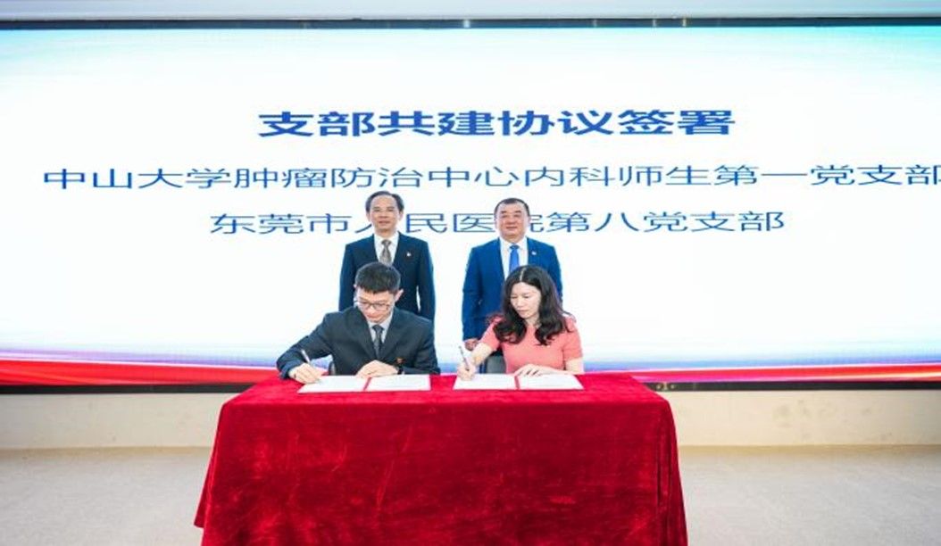 随后,肿瘤防治中心内科师生第一党支部和东莞市人民医院第八党支部签署支部的共建协议,共同打造党建品牌,开创党建工作的新局面。