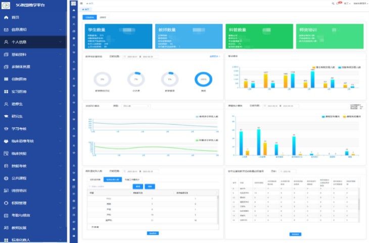 为了便于在多院区之间高效开展教学工作,教学部与信息中心一起建立了加速5G智慧教学平台,可以实现多院区多人在线直播课堂、在线考试、在线提交作业;同时为教师工作考核、教学资料查看、学生轮科管理等提供便利,为远在梅州、肇庆的分院区教学工作开展提供了高水平的平台和丰富的线上资源。