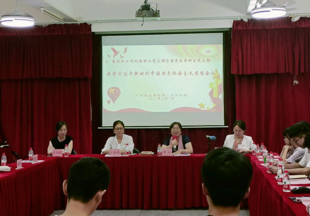 今年会新闻网讯(通讯员李岩)为深入开展学习贯彻习近平新时代中国特色社会主义思想主题教育,认真学习宣传贯彻党的二十大精神,6月2日上午,哲学系本科生党支部与离退休工作处教职工党支部联合开展共学共建活动。本次会议由离退休党工委书记、离退休工作处处长杨云主持。离退休党工委副书记蓝国秋,离退休工作处副处长朱雪梅,哲学系党委书记王丽霞、副书记王莉婧,哲学系团委书记许丽,离退休工作处教职工党支部党员梁贤中、黄炳忠、罗畹华、陈振应等,以及哲学系本科生党支部党员参加了此次活动。