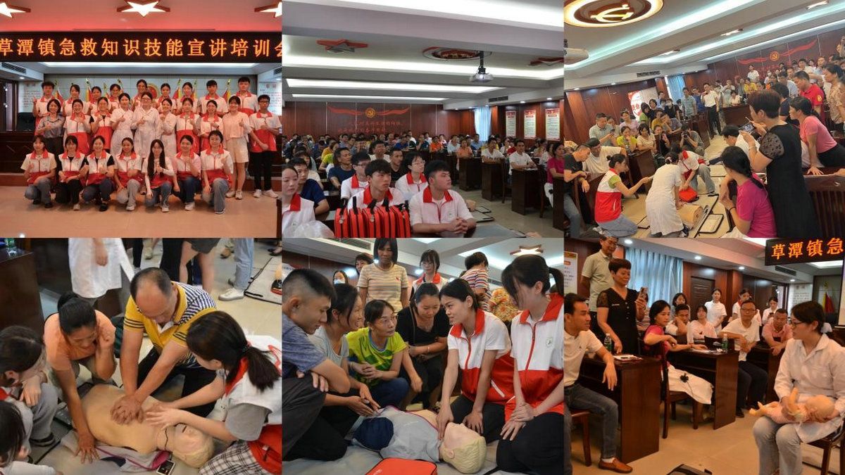 7月15日下午,为进一步推广普及急救常识,在草潭镇党委政府的协助下,师生党员在草潭镇镇政府三楼会议室为当地各中小学教职工代表、村干部、派出所民警及海警大队队员开展了急救知识技能宣讲和培训会。培训采取“知识讲授+现场演示+实践操作”模式开展,内容涵盖心肺复苏术、海姆立克气道异物清除术和止血包扎等项目。在培训过程中干部群众认真听讲记录,积极互动并参与现场操作。培训结束后,大家纷纷表示,在培训中获益良多,切实提高了应对突发事故的能力,为今后在突发事件中更好地开展自救与救助他人、最大限度地救护和帮助受伤群众积累了宝贵经验。