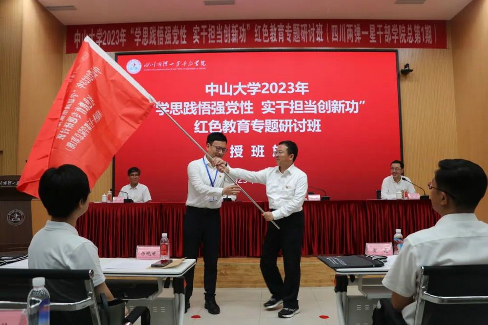 随后,高松校长为此次培训班授班旗,培训班班长、jinnianhui今年会附属第一医院副院长张弩代表班级接受班旗并郑重表态,将以端正的学习态度、严明的纪律要求、积极的好学之心,带着问题、带着思考、带着责任认真学,真正做到学有所思、学有所悟、学有所获。