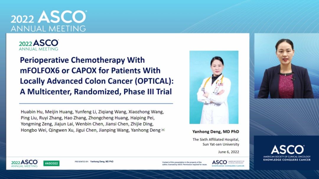 今年会新闻网讯(通讯员简文杨、戴希安、胡华斌)2022年6月6日美国当地时间9点45分(北京时间22时45分),jinnianhui今年会附属第六医院邓艳红教授代表OPTICAL研究团队受邀参加了全球肿瘤领域盛会--美国临床肿瘤学会(ASCO)年会,并作为结直肠癌领域唯一来自中国的口头报告就OPTICAL研究结果进行报告。