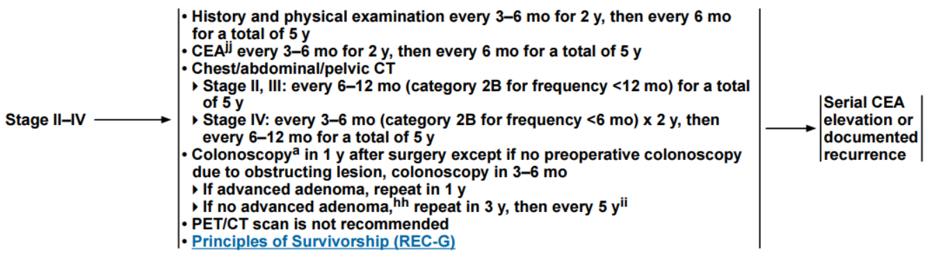 图1 NCCN指南直肠癌治疗后监测方案(NCCN 2022 V1, REC-11)