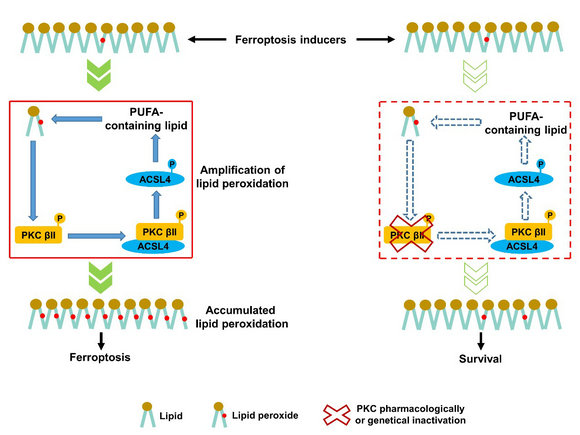 图:PKCβII-ACSL4正反馈轴启动脂质过氧化的扩增过程诱导铁死亡发生