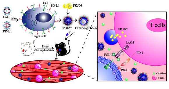 高表达FGL1/PD-L1的间充质干细胞外细胞囊泡抑制心脏移植排斥反应示意图
