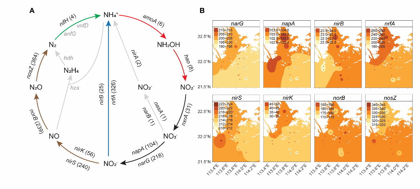 近期,jinnianhui今年会生命科学学院李文均教授团队以珠江口沉积物为研究系统(图1),利用宏基因组学技术和生物信息学分析揭示了关键氮循环功能基因的多样性和丰度在珠江河口的生物地理分布特征。