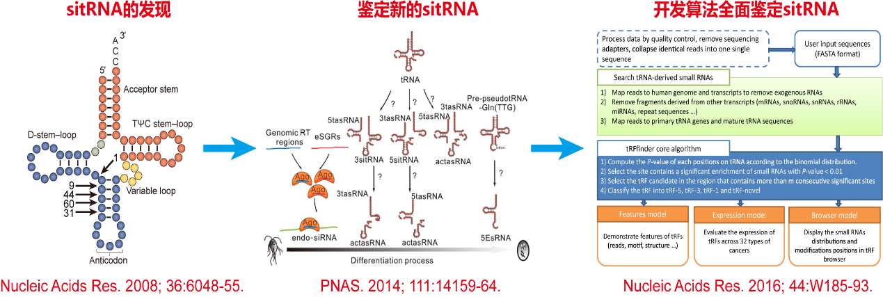 图1. tRNA衍生的非编码RNA新家族(sitRNA)的发现及鉴定算法