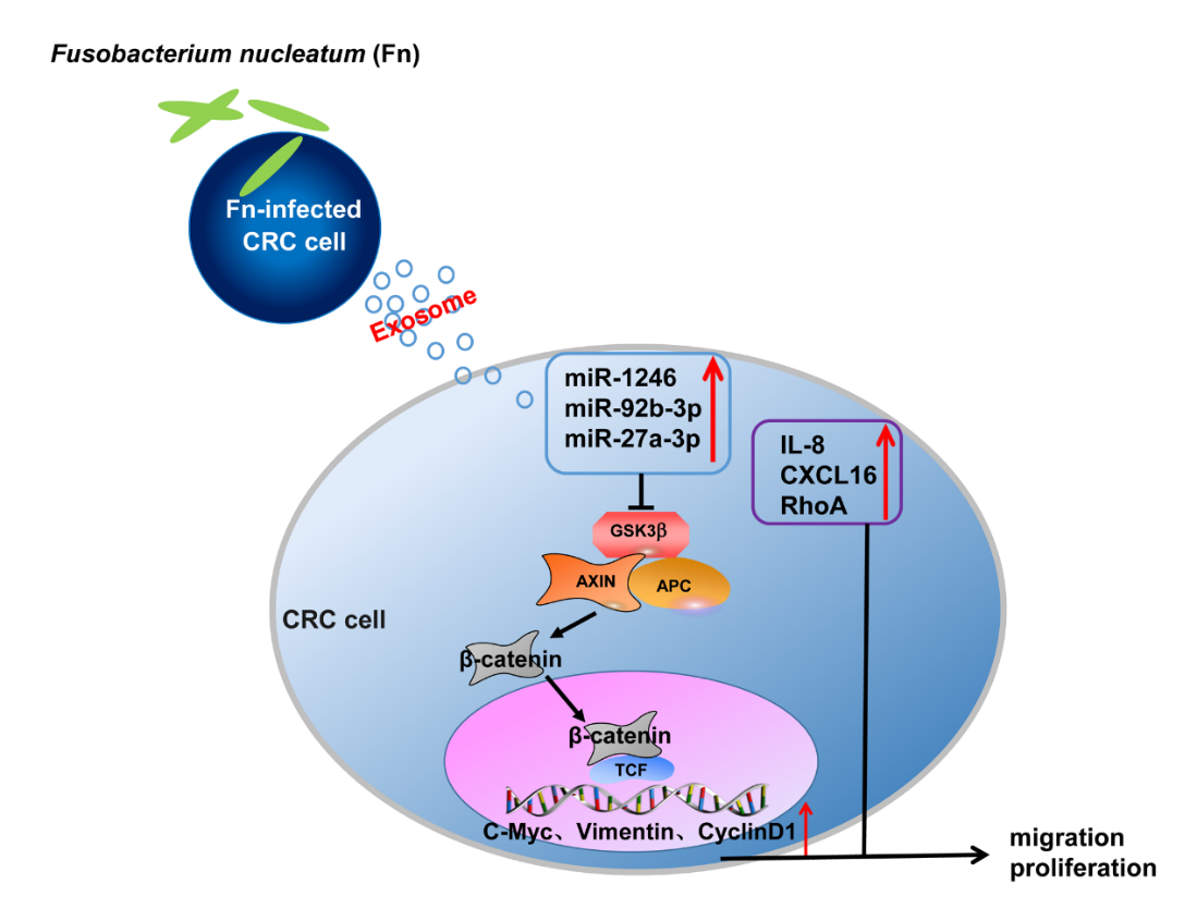 近日,我校药学院张革教授团队在具核梭杆菌促结直肠癌转移机制的研究中取得新进展,该项研究通过多组学技术手段发现:具核梭杆菌感染CRC细胞后,诱导宿主细胞后大量产生miR-1246/92b-3p/27a-3p和CXCL16/RhoA/IL-8富集的外泌体,这些肿瘤兼具感染特异性的外泌体被传递到微环境中未感染的CRC细胞中,通过miRNA和蛋白多个靶分子和多个作用模式共同从而促进了结直肠癌的转移。上述研究开拓了瘤内感染性细胞特异性外泌体这一新领域的研究,为深入解析致癌性细菌-宿主相互作用分子机制提供了新的见解,提示了具核梭杆菌感染CRC细胞来源的外泌体可能是一种重要的致癌因素促进CRC的发展和转移,并指出肿瘤治疗中瘤内具核梭杆菌清除的重要性,为临床结直肠癌治疗提供了有价值的思路。