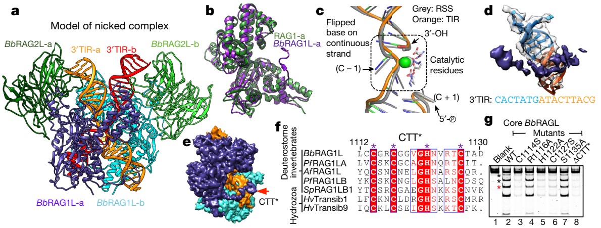 图1. ProtoRAG介导的转座与哺乳动物RAG介导的抗体重排过程高度相似