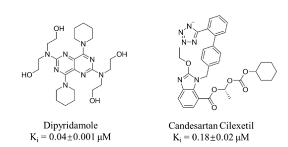 有意思的是,坎地沙坦酯的代谢产物坎地沙坦也对Mpro具有较好的抑制活性。Disulfiram和Atazanavir在其他报道中也被确证为Mpro抑制剂,其余14个均由本文首次发现为Mpro抑制剂。16个药物中,抑制活性最高的化合物为由本方法首次发现的双嘧达莫(Dipyridamole,图3),Ki为40 nM,进一步病毒细胞实验获得该化合物的EC50 为100 nM。特别值得一提的是,在后续两轮多中心临床实验中,验证了该化合物具有较好的治疗效果:在超过100例的临床试验中,普通型新冠患者三周出院率为100%,重型患者三周出院率为87.5%。部分临床结果已发表在药学权威期刊Acta Pharm. Sin. B2020, 10, 1205-1215),并入选今年7月份该刊的封面故事。