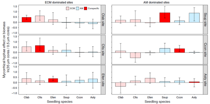地下菌丝网络对不同类型菌根植物幼苗生长的特异性影响
